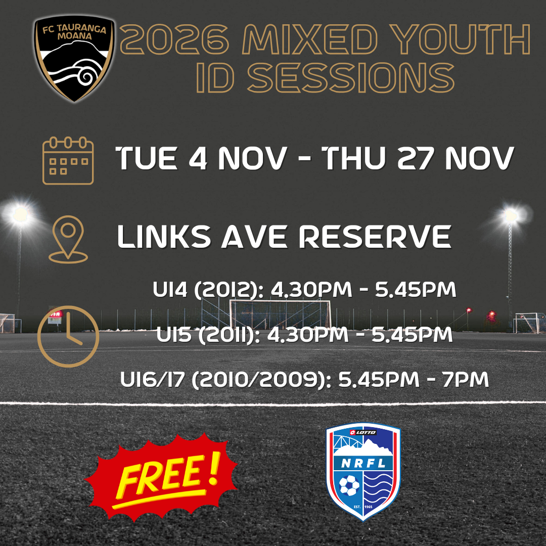 We have an ID Phase for our TDP groups in November 2025 for players interested in playing in the following mixed leagues: U14 WaiBOP, U14 NRFL, U15 NRFL, U16 WaiBOP & U17 NRFL. All details below;