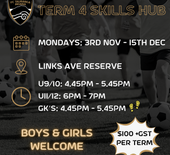 Times: U9/10: 4.45pm - 5.45pm | U11/12: 6pm - 7pm